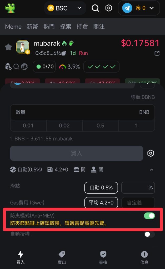 启用「防夹模式」阻挡 MEV 攻击.
