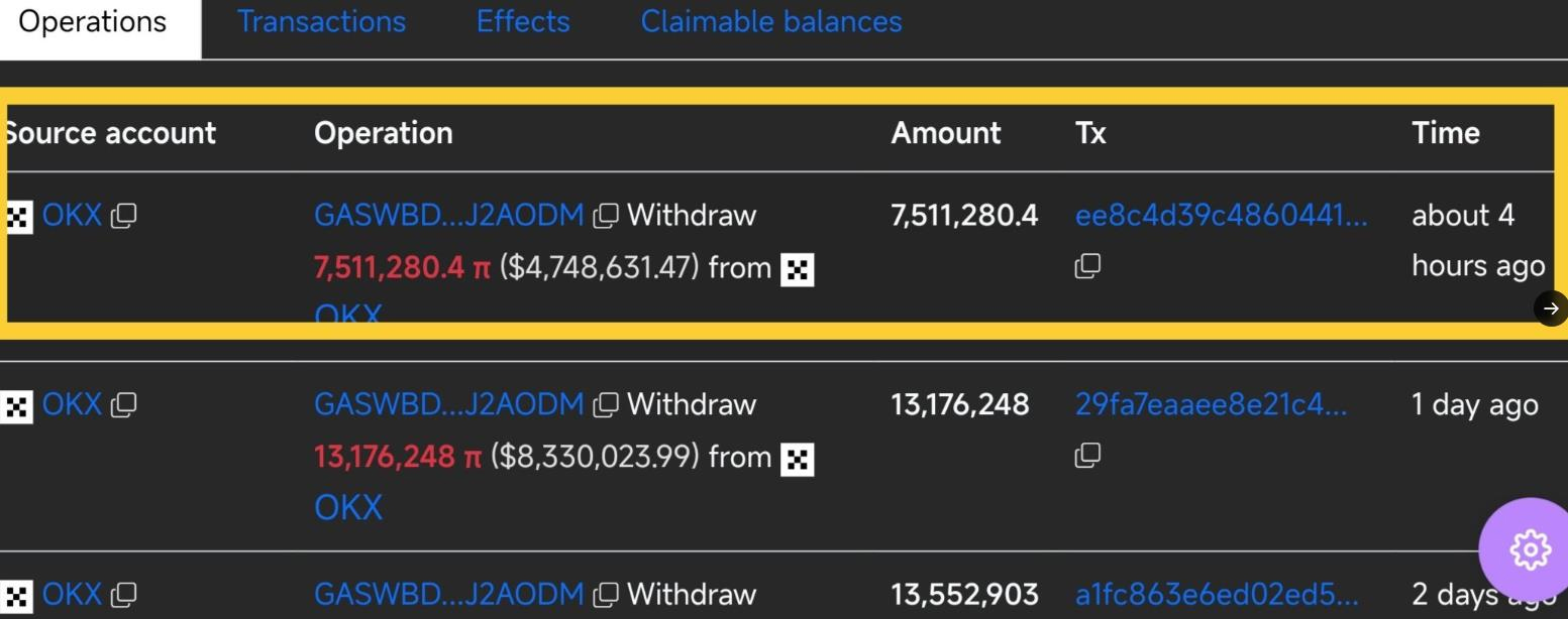 一个神秘地址从OKX提走了 751万枚Pi,市值接近数百万美元,引发社区广泛关注。