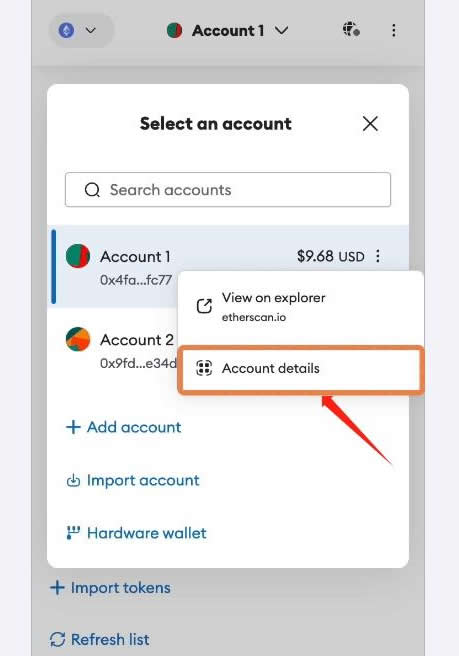3、在“账户详细信息”页面上,点击“显示私钥”。