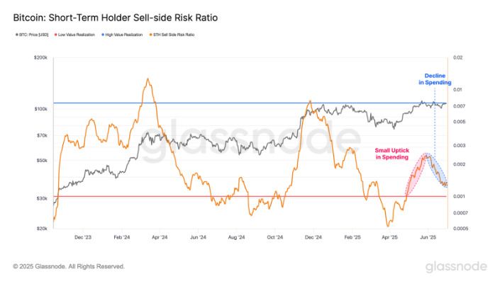 比特币短期持有者卖方风险比率 来源:Glassnode