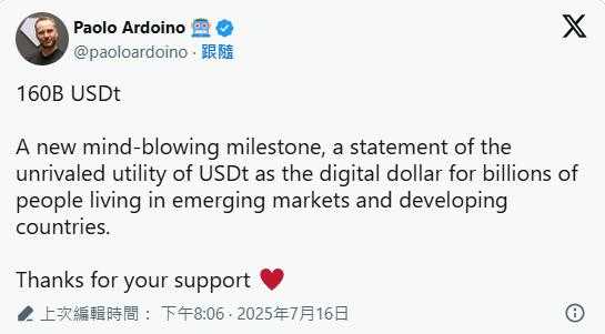 对此,Tether 执行长Paolo Ardoino 也在X 平台发文表示: