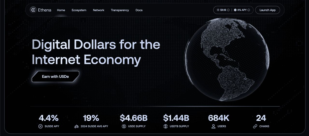 Ethena USDe (USDe)是一种双代币合成美元系统,由超额抵押的短期美国国债和稳定币储备作为担保,协议支持比率始终高于100%,以确保稳定性。用户透过锁定符合条件的抵押品,以固定的$1 锚定价格铸造USDe,同时将USDe 质押到sUSDe 可获得原生质押奖励,目前年收益率约为4%,由协议收入支付。动态稳定费用会自动调整铸造和赎回成本,以在市场压力期间维持锚定价格,并且每周的第三方储备证明加上每月的托管人证明,提供对支持资产的持续透明度。