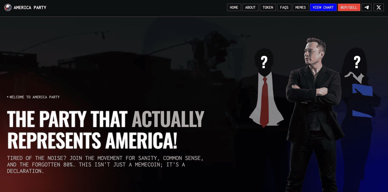 美国党派(AP) 加密代币源自Musk 与总统特朗 普之间关于「大美丽法案」的公开争执,Musk 威胁称若该支出法案通过,他将组建美国党派。虽然Musk 本人与该代币并无正式关联,但该公告激起了迷因币市场的狂热,使得AP 仅仅依靠名称联系和政治猜测就飙升。该项目代表了政治主题迷因币的典型投机性,它们利用现实世界的热议来获得快速且短暂的收益。