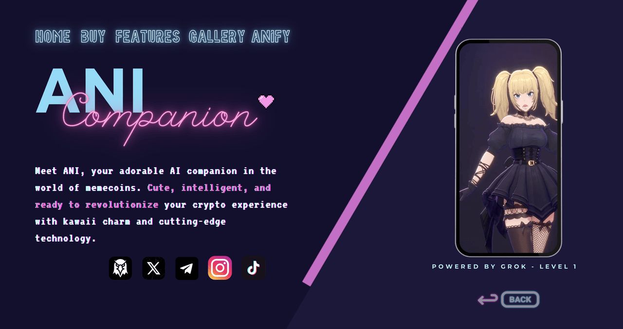 ANI Grok Companion 代表的不仅仅是memecoin。它被定位为数位领域中的可爱AI 伴侣,结合了动漫美学与最前沿的区块链技术。该项目抓住了AI 伴侣日益受欢迎的趋势,以及Musk 的Grok AI 平台,并针对对AI 开发和日本流行文化美学感兴趣的社群。 ANI 代表了动漫文化、人工智慧和memecoin 投机的交汇点,为持有者提供了一种超越传统代币所有权的互动体验。