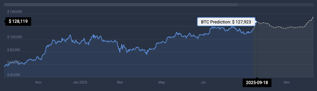 CoinCoDEX 分析师表示,比特币(BTC)将继续上涨未来几天。该平台预测比特币将在9月18日创下127,929美元的历史新高。如果达到127,929美元的目标价位,BTC价格将较当前价格上涨11.9%。CoinCodex预计,BTC在攀升至127,929美元后将出现小幅回调。不过,该平台预计BTC将在今年12月突破13万美元大关。