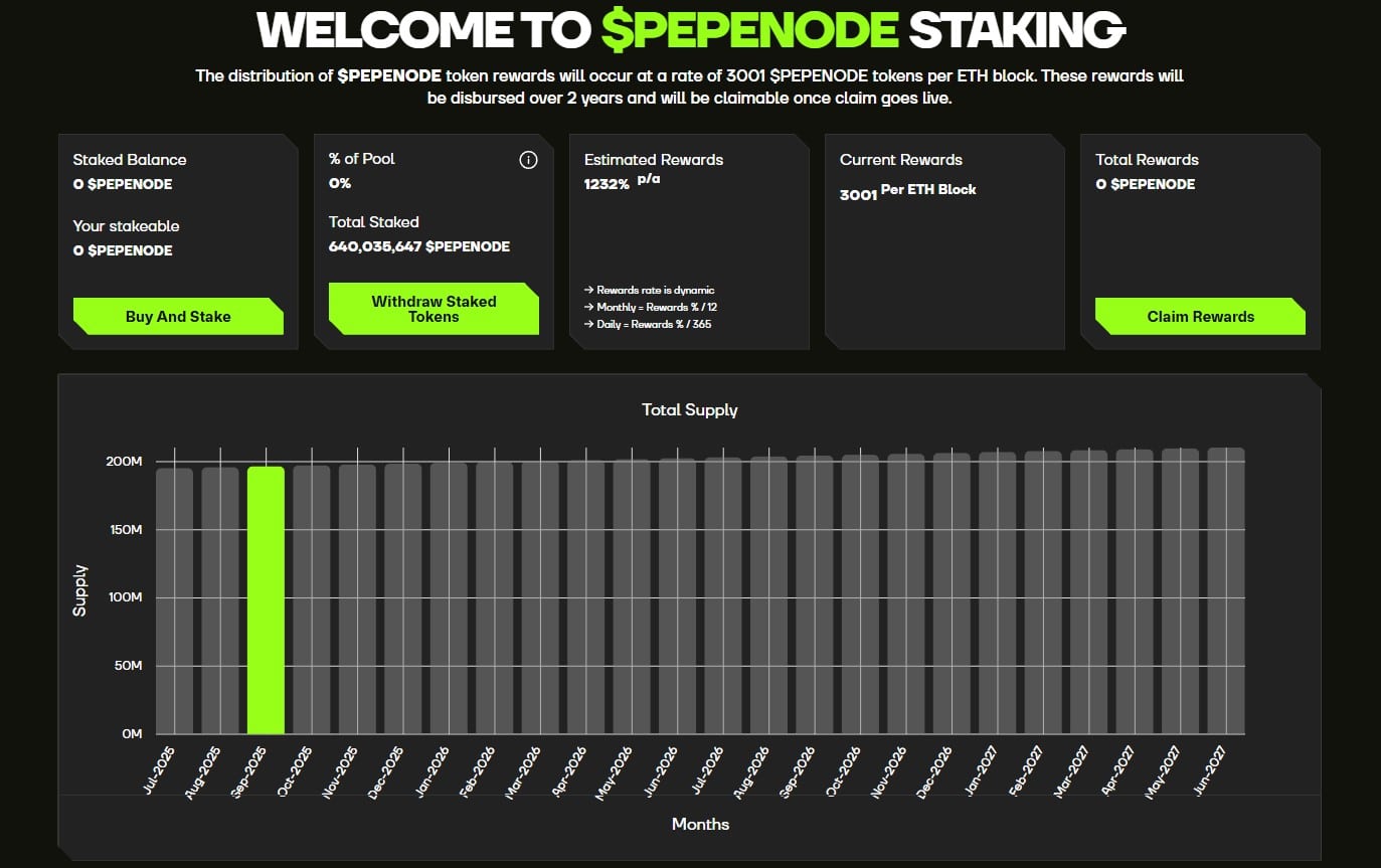 PEPENODE 无需物理设备和高昂的电费,它可以让您构建虚拟采矿室,其中可定制的节点可以生成像 PEPE 这样的 meme 币。