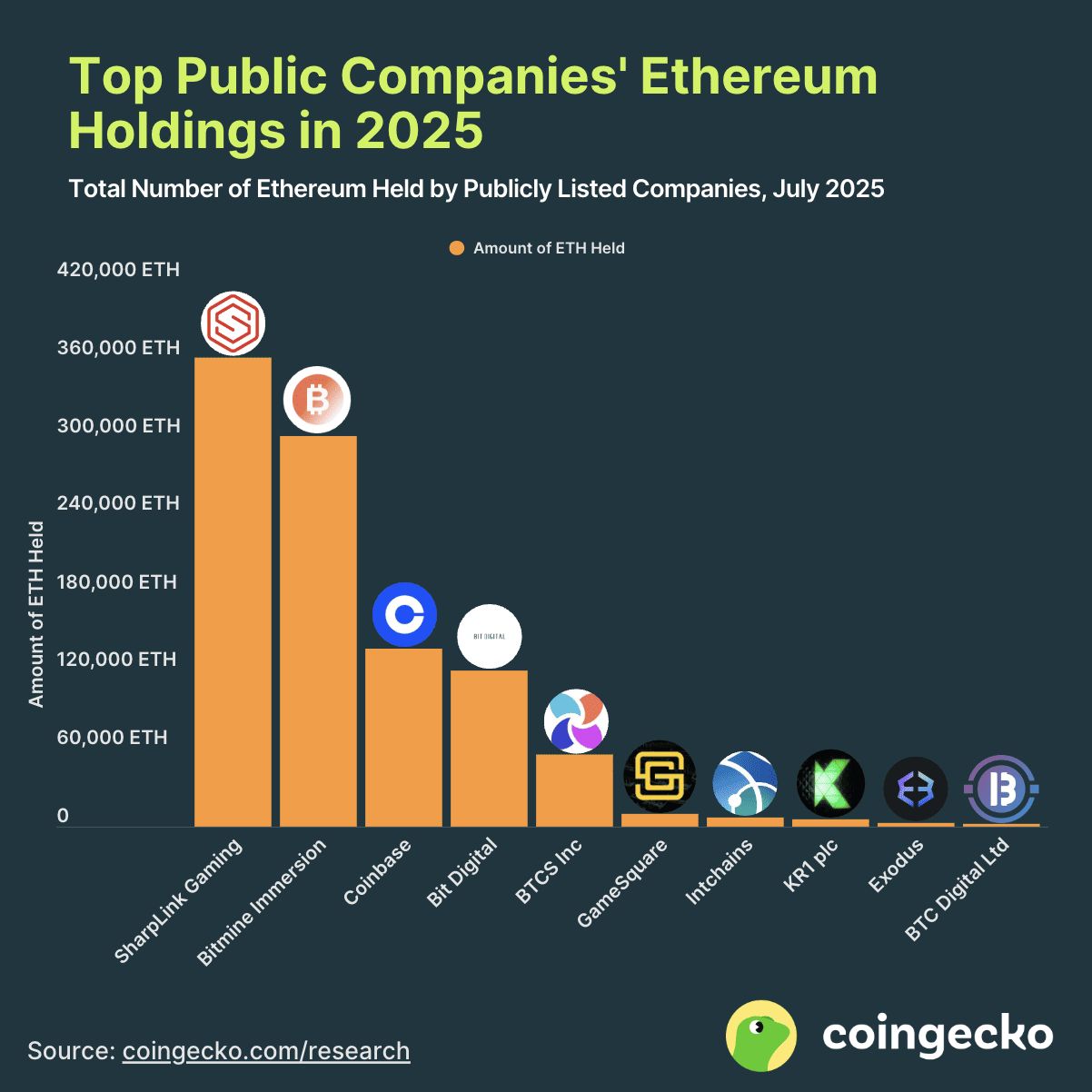SharpLink已于2025年7月30日额外收购200,000个ETH | 来源:Coingecko,2025年7月24日
