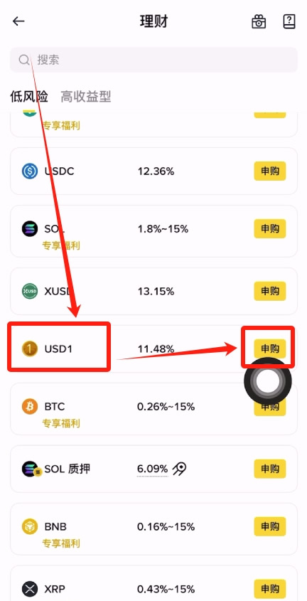 接下来我就来为你演示,如何在币安交易平台购买USD1币并申购理财产品。