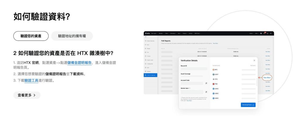 - 准备金证明:HTX每月进行Merkle树审计并公布储备数据,保持储备率在100%以上。这种透明度使用户能够独立验证平台的偿付能力。