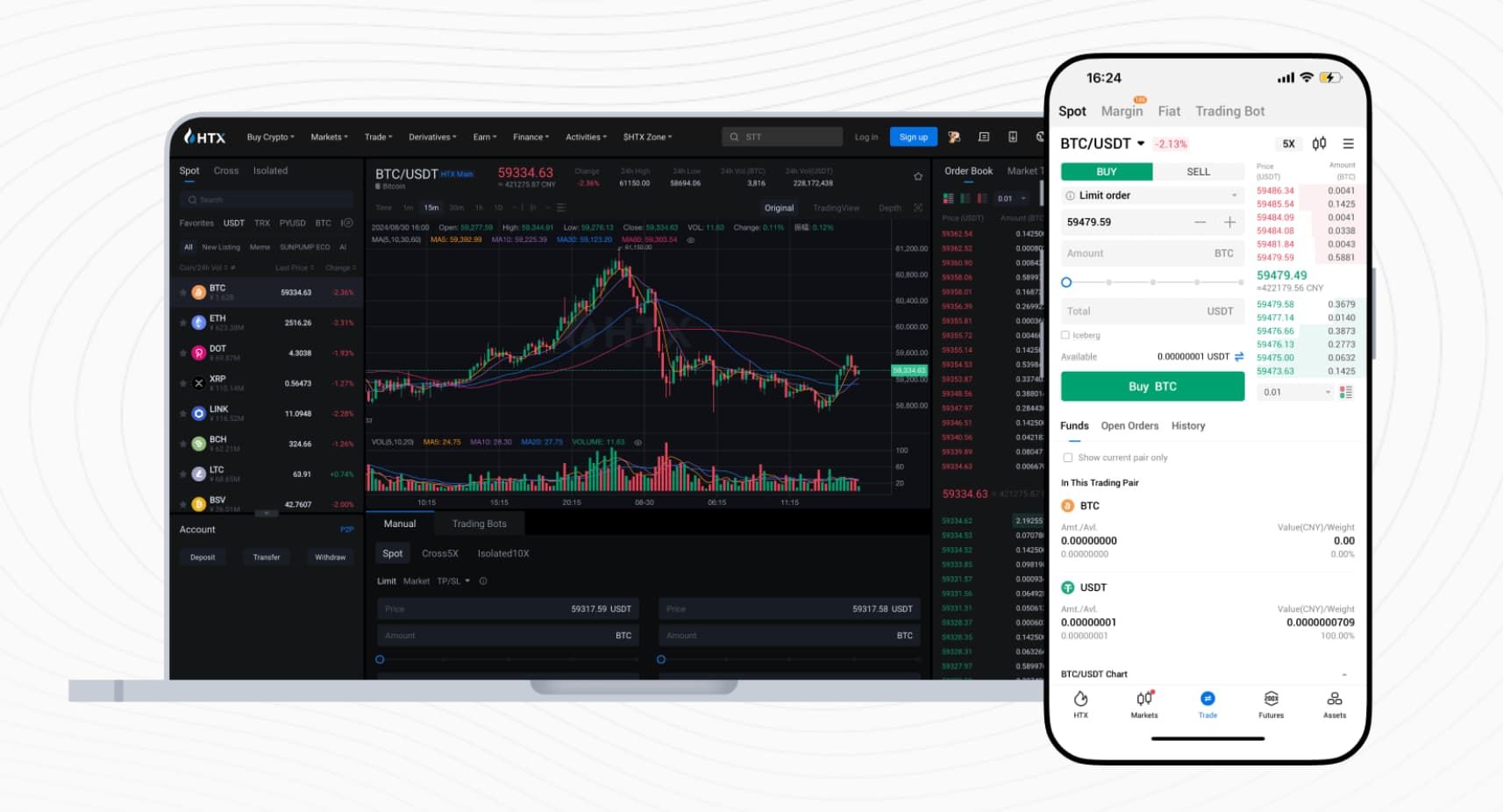 HTX针对iOS和Android的移动应用程序提供全功能交易体验,包括高级图表、价格提醒和订单管理,确保用户随时随地都能交易。
