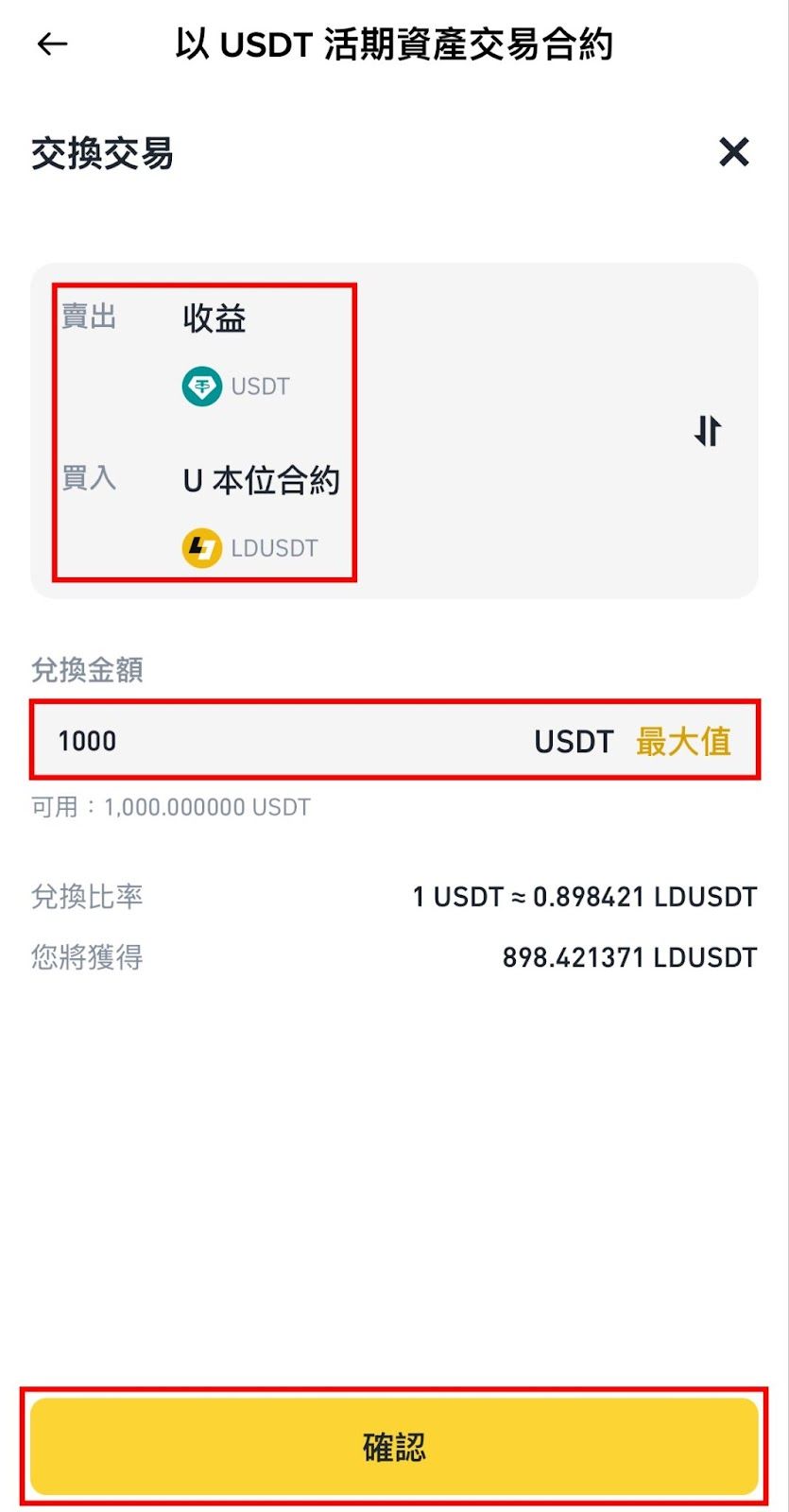 - LDUSDT 申购步骤4:把活存USDT 交换成LDUSDT