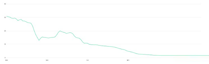 如今,支票账户的平均利率为0.07%。所谓的“储蓄账户”收益率为0.38%。支票五天即可兑现。股票结算采用T+1(而非周末结算,正如我们去年的广告宣传中指出的那样)。Visa只需1-3个工作日即可向商家付款,同时保持80%的毛利率。我们的政府通过隐性担保为少数几家银行提供支持,并定期用纳税人的钱救助它们。与此同时,在我有生之年,美元价值已下跌约80%。