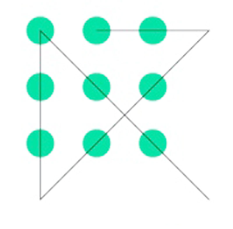 这是一项(字面意义上的)跳出思维定式的测试。如果你一直局限于思维定式,就无法把所有点串联起来。