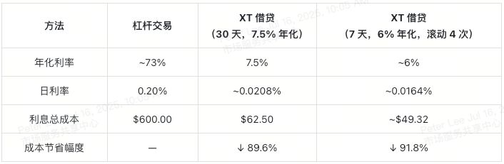 - 策略一:用 XT 质押借贷替代杠杆融资,成本立省 90%
