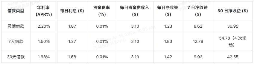 - – 如果你计划短时间内完成套利,优先使用 7 天借款,利息支出最少。