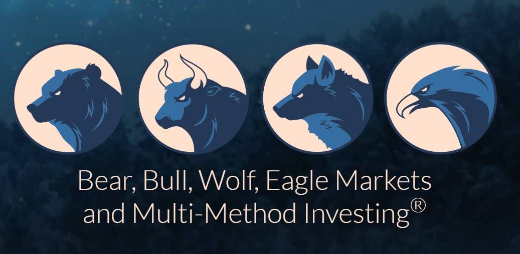 这不是我先说的,一个叫 Jesse B. Mackey 的投资研究者,早在几年前就给出了更清晰的地图——从黑白的牛熊二元世界,扩展为彩色的四象市场:牛、熊、狼、鹰。