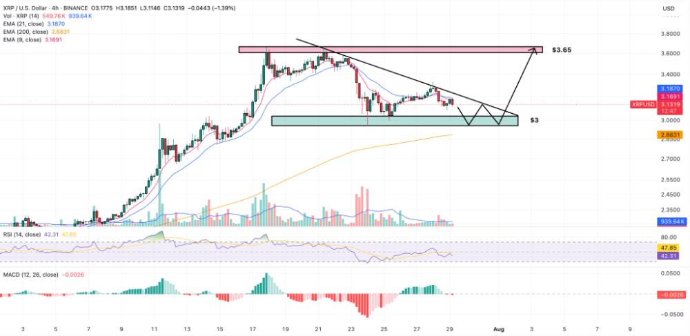 只要3 美元的支撑位守住,价格走势就会继续利好XRP 价格预测。若该代币确认突破下行三角形,将进一步印证此乐观前景。