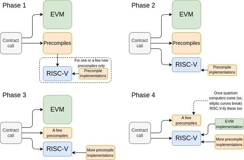 Vitalik Buterin概述了转向RISC-V架构的四个阶段。来源:Vitalik Buterin