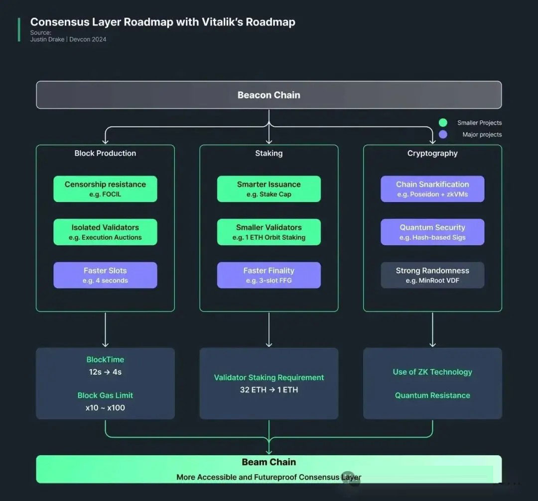 尽管德雷克在宣布 Beam Chain 路线图时强调这是他作为个人研究员的提议,但精益以太坊路线图的发布表明 Beam Chain 的实施将正式开始。
