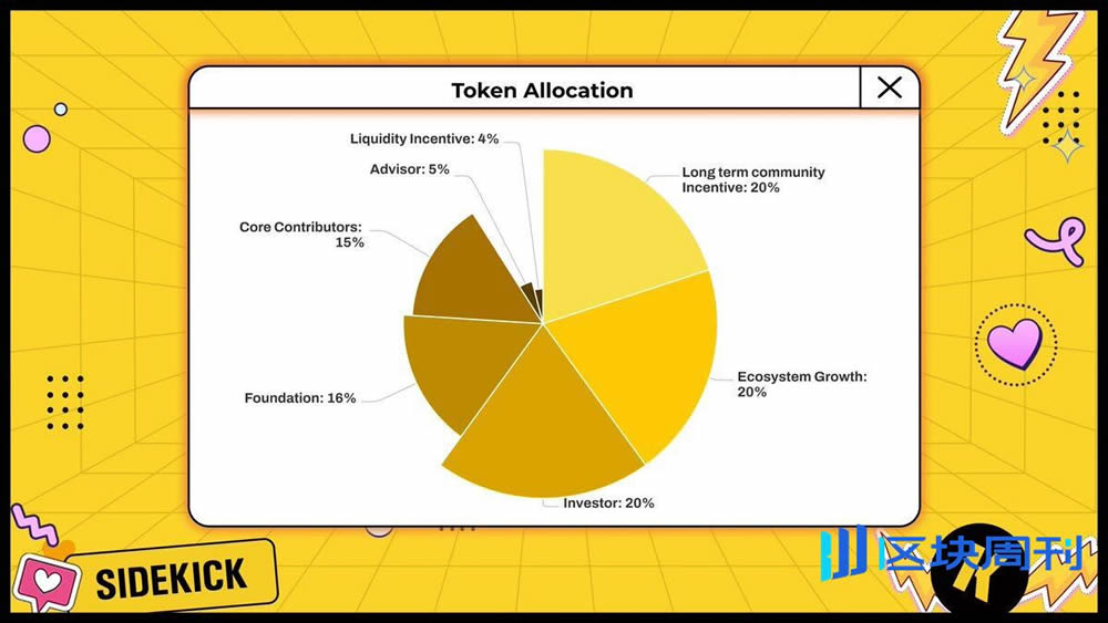 Sidekick 代币经济学:总量 10 亿,社区激励分配 20%,初始流通占比 11.13%