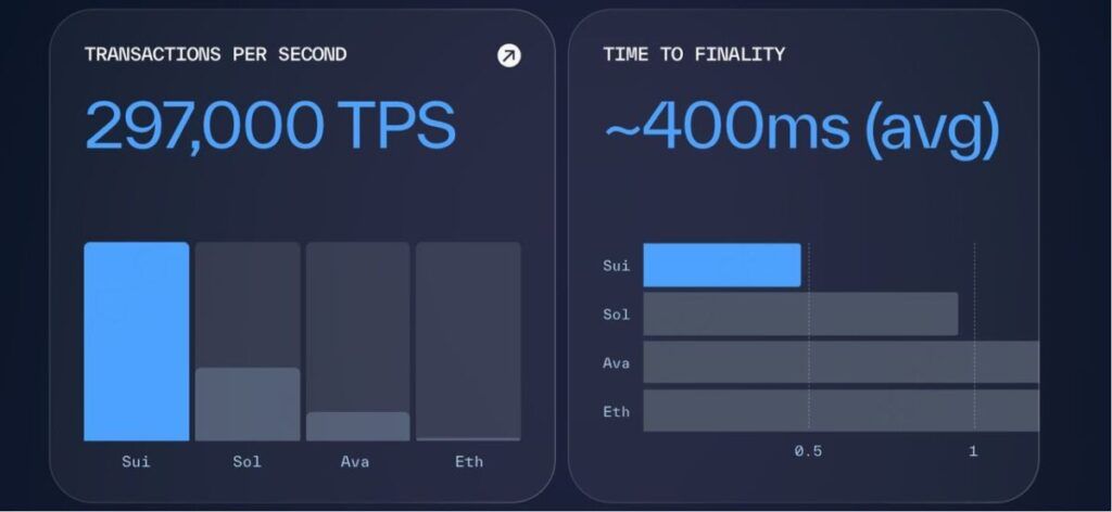 Sui 的共识模块基于 Narwhal 与 Bullshark 架构,具备高容错性和低延迟特点。2024 年,Sui 引入全新的 Mysticeti 协议,将最终一致性时间缩短至 400 毫秒以内,同时保留去中心化特性。