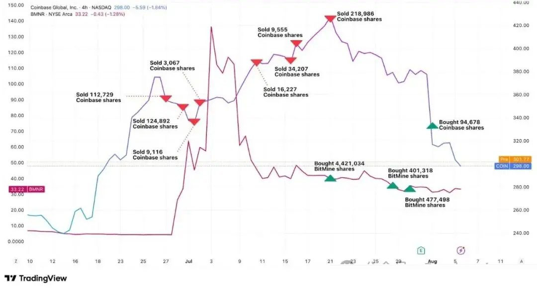 他们也在 Coinbase 达到顶峰时卖出,并在令人失望的财报导致股价暴跌后加倍买入。他们在多次市场低点买入 BitMine。