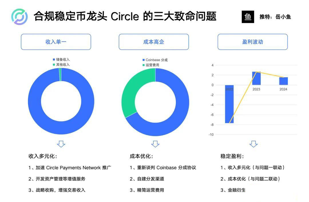 为了减缓盈利的波动,Circle要做的其实和第一个问题和第二个问题相关,一方面是收入多元化以降低利率依赖,另一方面是成本优化以稳定利润率。