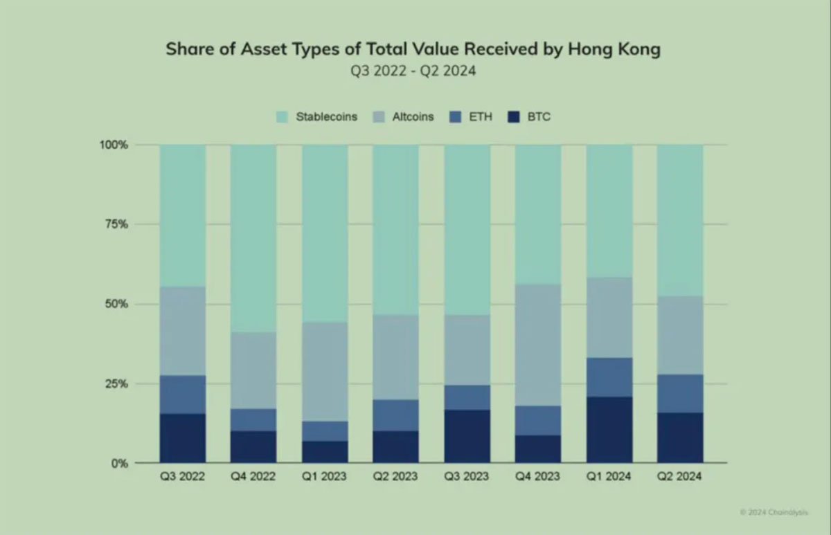 图1 香港收取的加密资产中稳定币占比高-Chainalysis