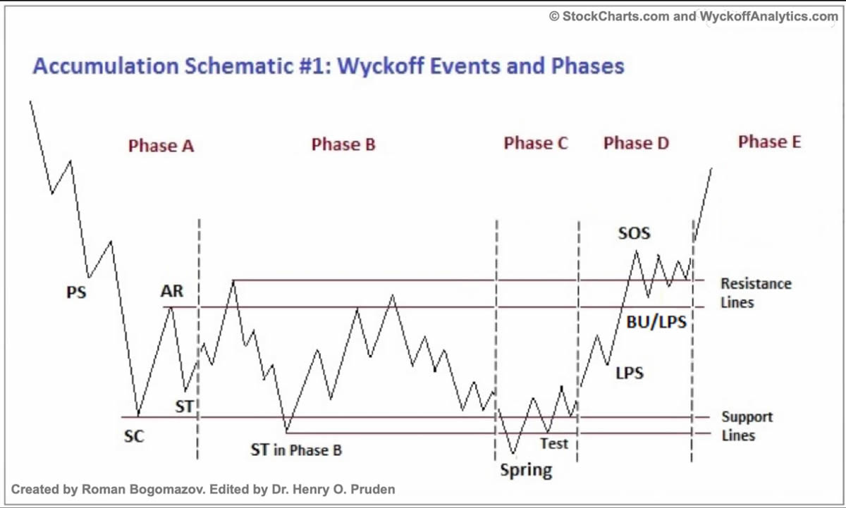 威科夫累积形态图解在威科夫的模型中,这通常伴随着短暂的回调,或“最后的支撑点”(LPS),以确认新的上升趋势。