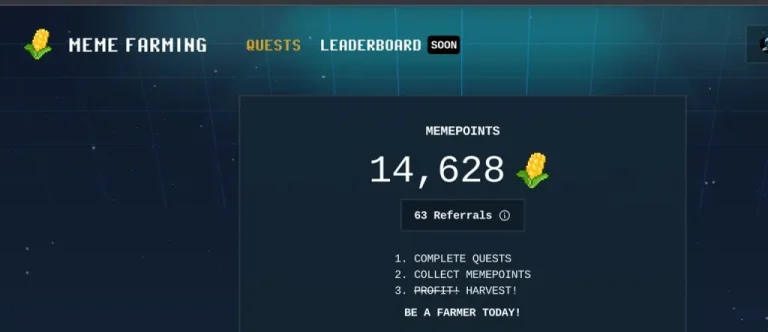 在这里你可以做一些社交任务并赚取Meme 积分,这些积分后来会变成Meme 代币,但没有关于具体数量的信息。如果您现在就开始这样做,请确保输入推荐代码以获得这些额外的Memepoints – 选择Captainz 并输入1430 作为代码。只有当您持有Captainz 或Potatoz 时才可以进行推荐,但如果您不是持有者,您仍然可以获得推荐Memepoints。