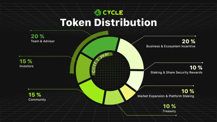 | 社区 | 15% | 为 Cycle 网络贡献收入的用户奖励:每两年发布一次,3 年后完全解锁 |