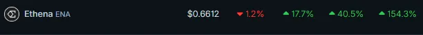 结果呢?ETHena 的Token $ENA 在过去一个月上涨了154%。