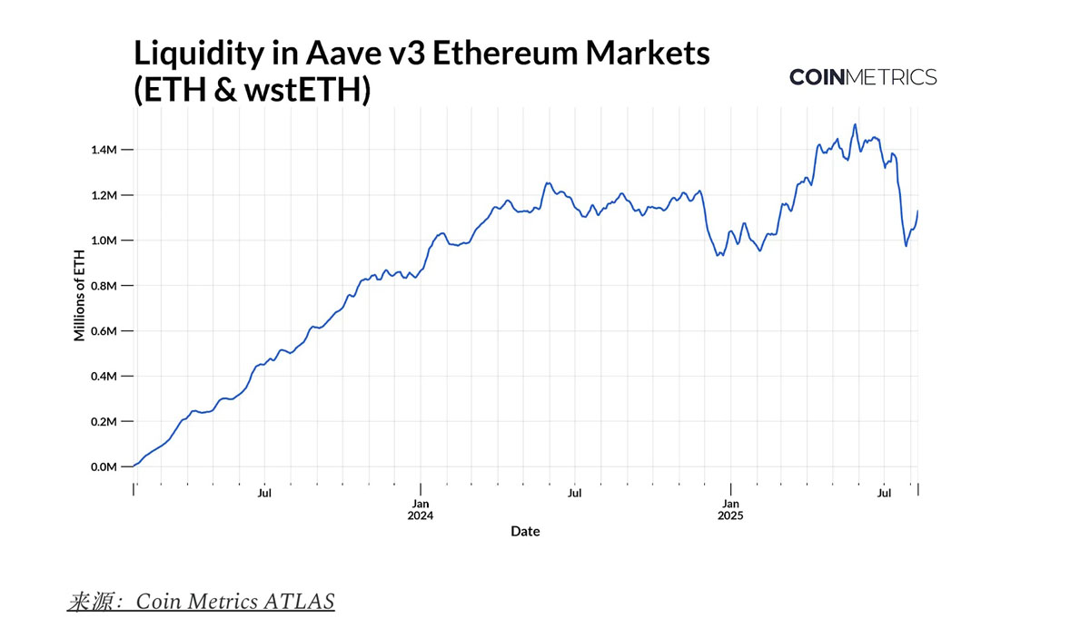 以 Aave v3 为例,ETH 与流动性质押代币(如 wstETH)构成了一个深度流动性池(已供应且可借出的资产量),目前规模已达约 110 万枚 ETH,国库的加入可以进一步增强该流动性池,在复合收益的同时提升市场流动性。