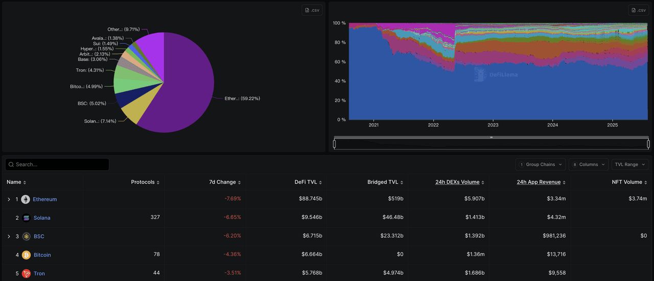 BNB 链继续在DeFi 领域中占据重要地位,按总价值锁仓(TVL)排名第三,仅次于以太坊和Solana。根据DefiLlama的资料,BNB 链占据了全球DeFi TVL 的5.02%,其生态系统中约有67 亿美元的资金被锁仓。尽管以太坊在市场中占据主导地位,且Solana 近年来获得了关注,但BNB 链持续的市场份额反映出其能够通过价格合理的交易、活跃的开发者参与和强大的零售参与保持其影响力。