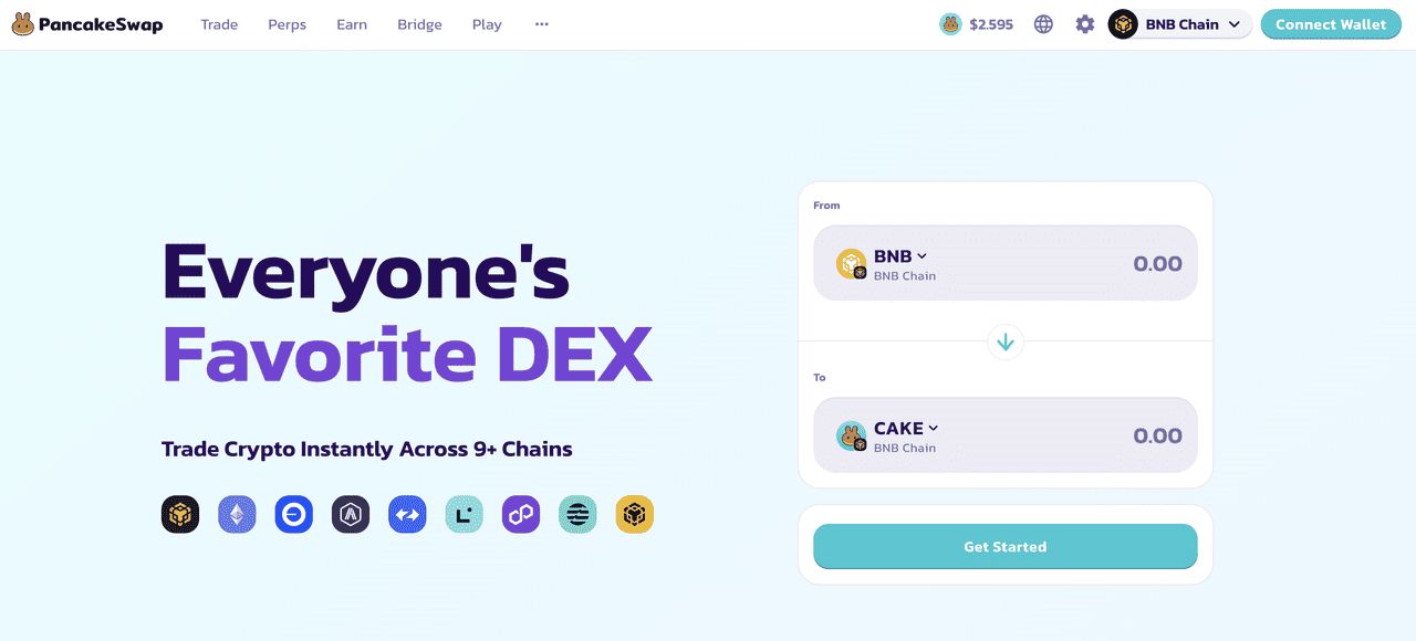 PancakeSwap (CAKE)保持著作为BNB 链上最大的去中心化交易所(DEX)的地位,市占率高达56.6%,并且总锁仓价值超过40 亿美元。该DEX 生态系统经历了重大的演变,BNB 链自2021 年以来首次超越以太坊,在每周DEX 交易量上达到近300 亿美元。这一增长展示了机构和零售投资者对BNB 链交易基础设施的信心。