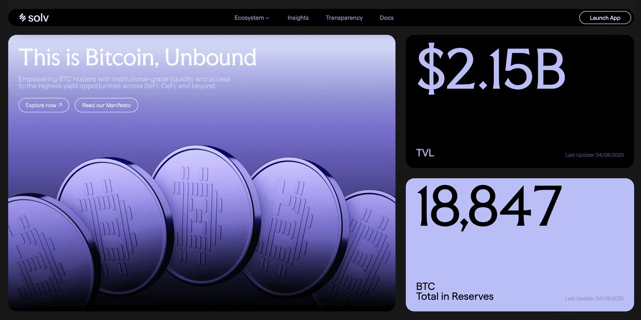 Solv Protocol (SOLV)作为一个知名的比特币质押平台,已在包括BNB Chain、Arbitrum和Merlin Chain在内的多个网络上建立了显著的存在。该协议的总锁仓价值(TVL)已超过2 亿美元,拥有超过55,000 名用户,创造了703 万美元的收入,显示出比特币DeFi 生态系统内的强大采用和实用性。比特币流动质押衍生品市场代表了DeFi 中增长最快的部分,尤其是在机构对基于比特币的金融产品的采用加速的背景下。