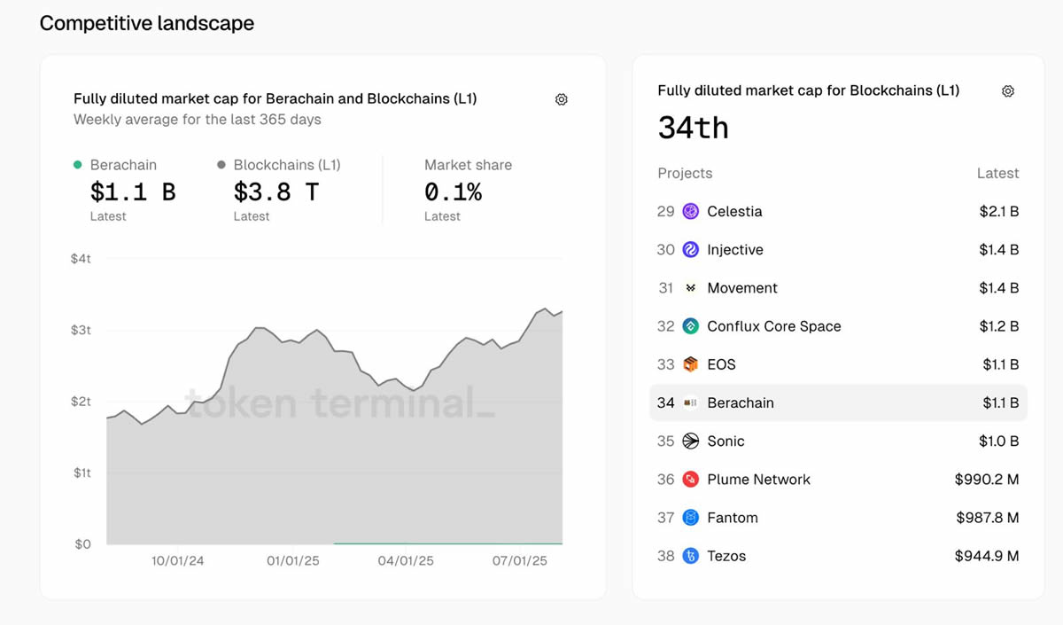 经过所有这些发展,Berachain 已成为完全稀释市值最大的区块链,排名约为 34 位。