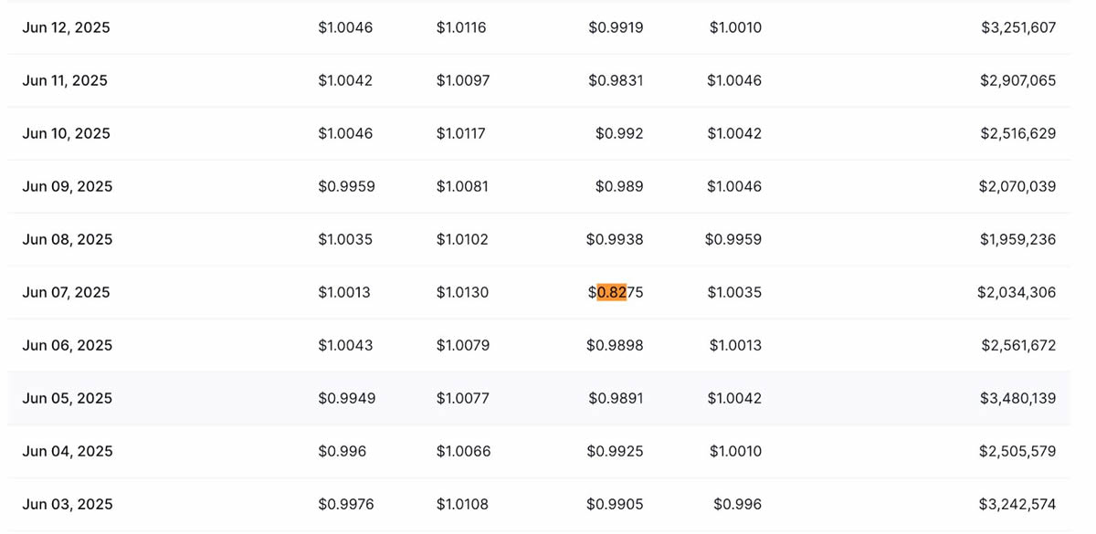 然而,2025年6月,HONEY经历了一次严峻的考验。在市场急剧下滑的背景下,HONEY经历了一次短暂但意义重大的脱钩事件,其价格一度跌至0.82美元左右。当时的分析表明,此次事件是由本地借贷市场Bend的一系列清算引发的,而更广泛的市场恐慌又加剧了这一事件的影响。
