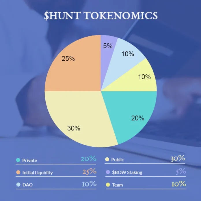 - 质押:用户可质押 $HUNT 代币来赚取 $BOW 代币;特别是在交易量较低的时期,这提供了一种替代反射收益率(reflection rate)的方法。