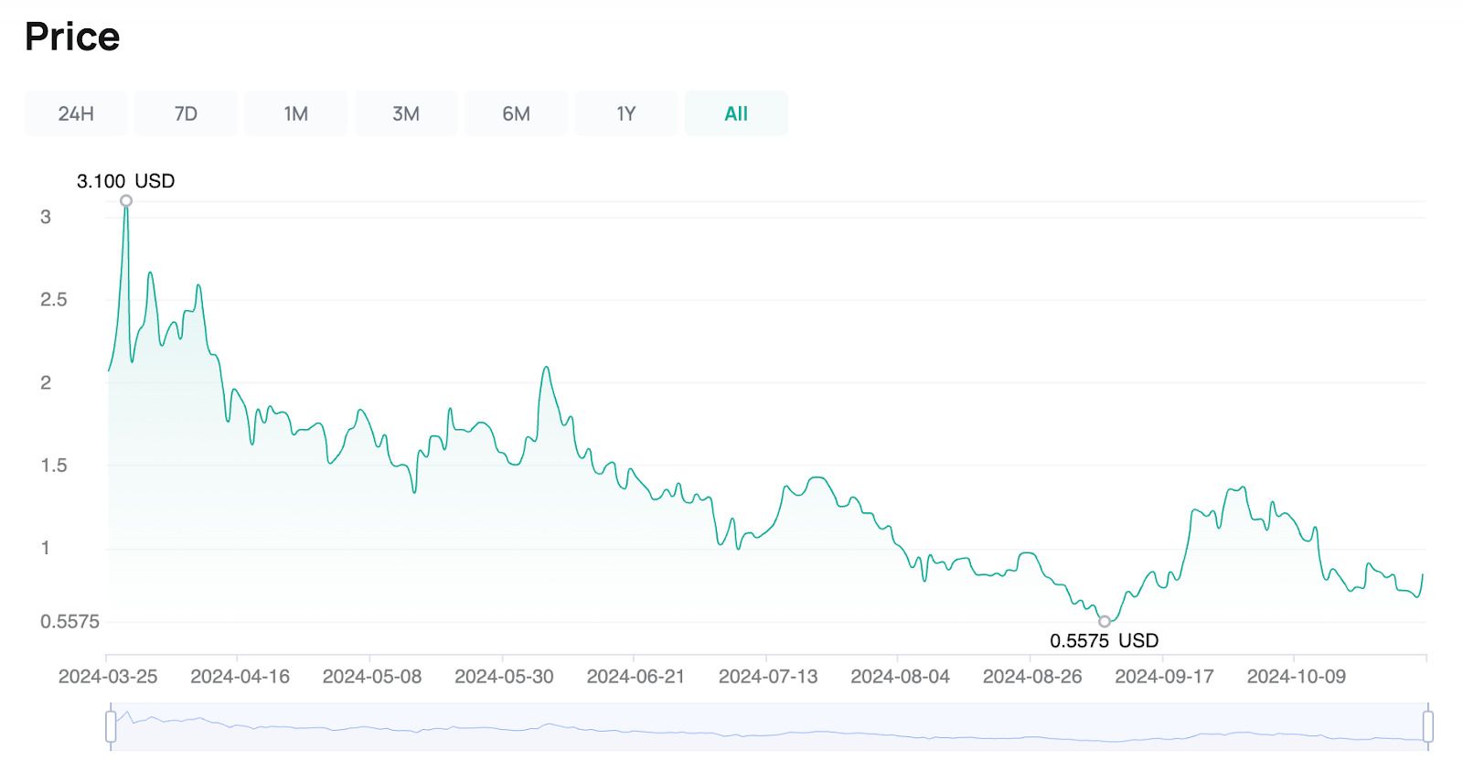 $RIO于2024年3月25日首次在CoinEx上市,与2024年大多数山寨币一样经历了看跌压力,但自2024年9月中旬以来开始吸引需求。