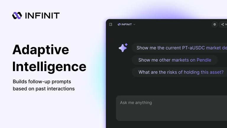 INFINIT 会分析钱包持有量、用户活动和聊天记录,并根据每位用户的个人情况提供建议。它不仅解答用户疑问,还能引导用户找到合适的收益机会,并帮助他们执行策略。