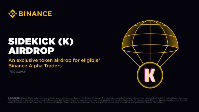 币安 Alpha 将于 8 月 8 日率先上线 Sidekick (K)。