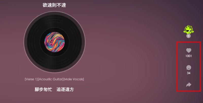 使用音乐播放器右侧的按钮来点赞、评论和分享歌曲