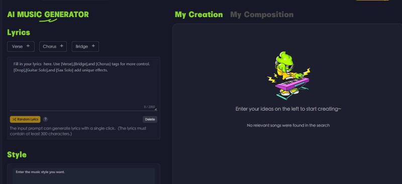 - 输入歌词,选择音乐类型、歌手类型(男/女)和歌曲名称