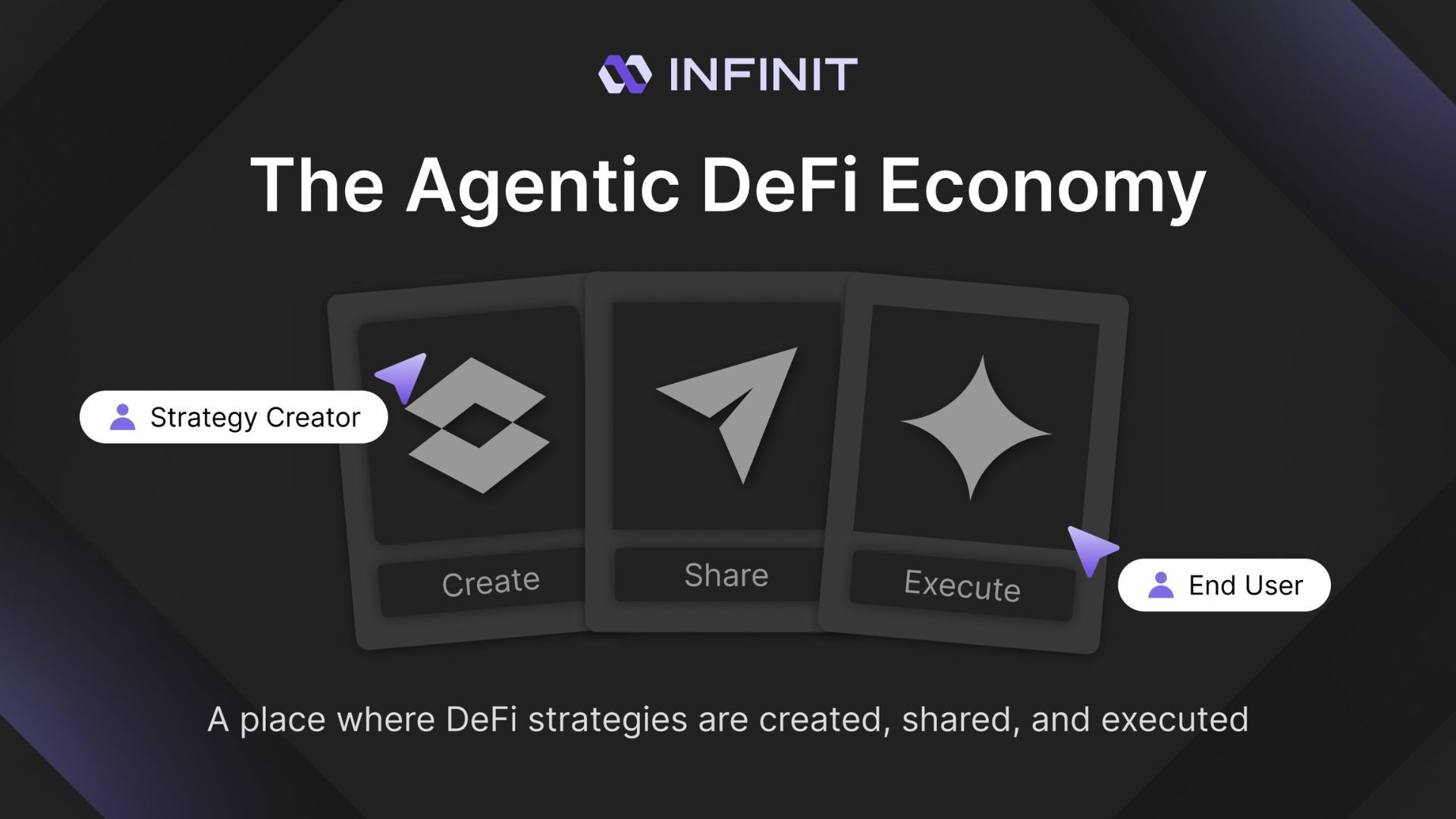 "INFINIT 是一个由 AI 驱动的 DeFi 智能协议,帮助任何人通过智能代理和自然语言界面,发现、评估并一键执行 DeFi 投资机会。 INFINIT 推动了 Agentic DeFi 经济的发展——这是一套去中心化、基于代理的基础设施,KOL 与 DeFi 专家可以在这里为社区用户创建并变现各种投资策略;而普通用户也能一键轻松跟随、执行多步复杂的 DeFi 策略。 INFINIT 将 AI 智能代理、基于提示的交互界面,以及一键 DeFi 执行功能集于同一平台,极大简化了 DeFi 的参与门槛,让更多人能够自由无忧地进入 DeFi 世界。 INFINIT 获得了 Electric CaPital、Mirana Ventures、Hashed、Lightspeed Faction 等诸多顶级投资机构和知名天使投资人的支持。"