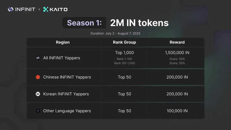 150 万 IN → 前 1000 名 INFINIT Yappers