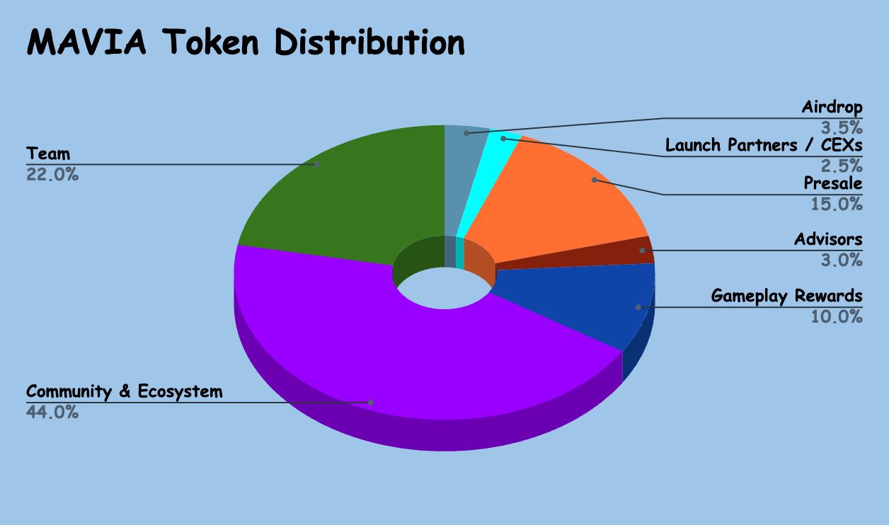 根据官网介绍,Mavia 代币的总供应量为 250,000,000 MAVIA,其代币分配如下: