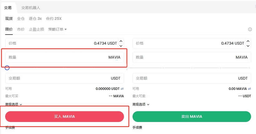7、输入买入MAVIA币的数量,点击买入MAVIA币,就完成购买操作