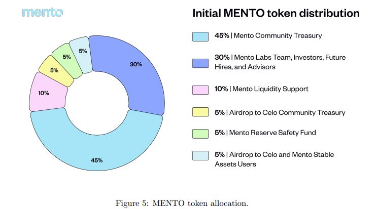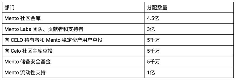MENTO 代币的总供应量为 10 亿枚,其中 45% 的初始代币分配给了 Mento 社区国库。