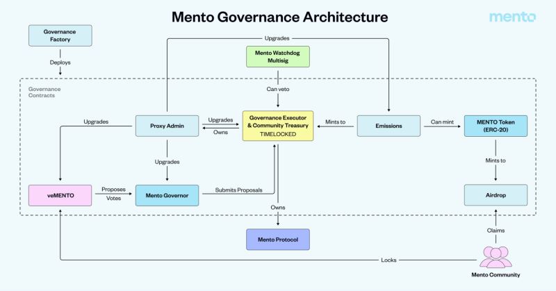 如今,Mento 已转型为完全自主的治理模式,成为独立的去中心化协议。Mento 协议现有的治理框架致力于确保决策既高效又能充分代表社区的多元观点。为实现这一目标,Mento 引入了以下治理组件: